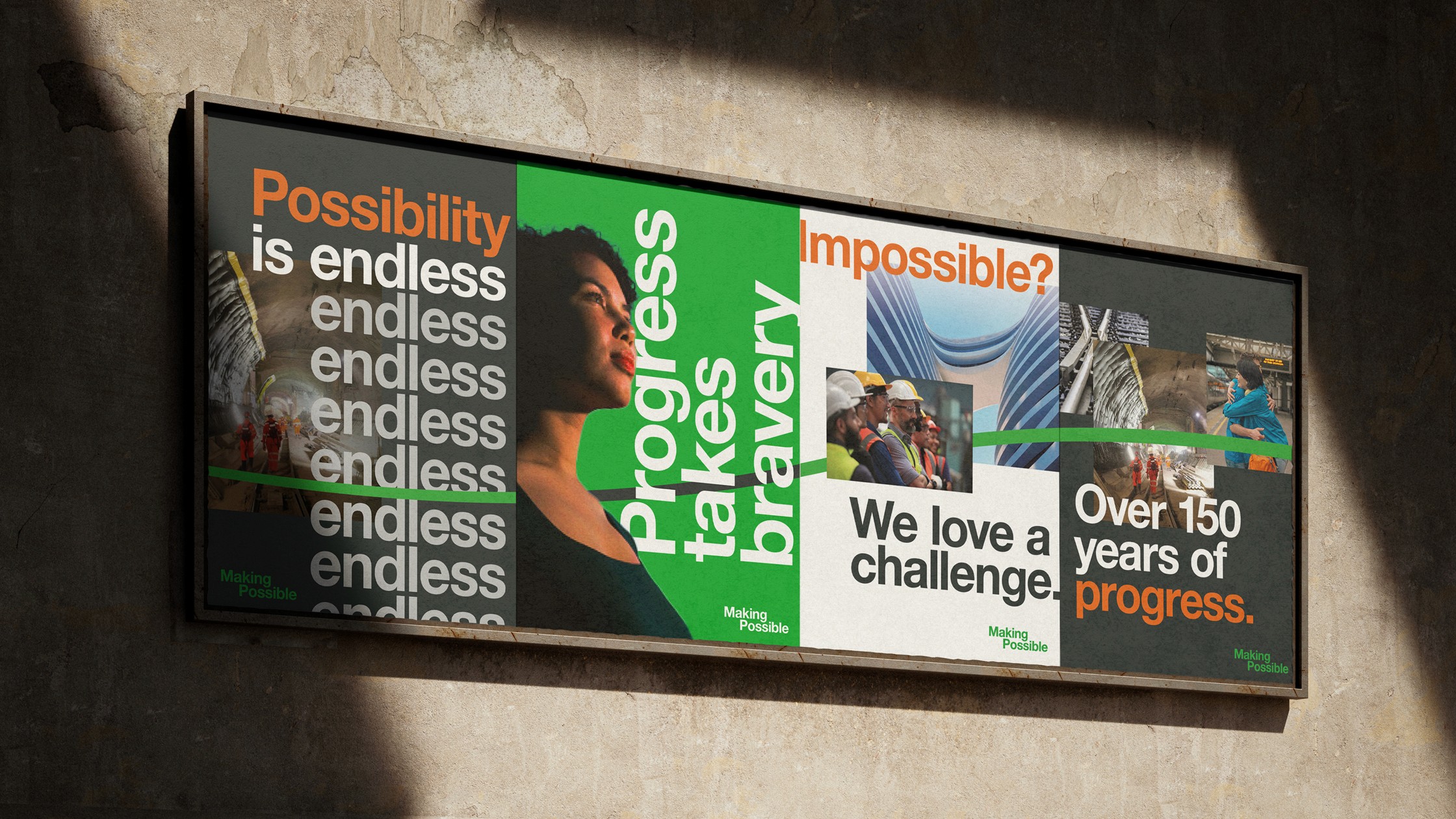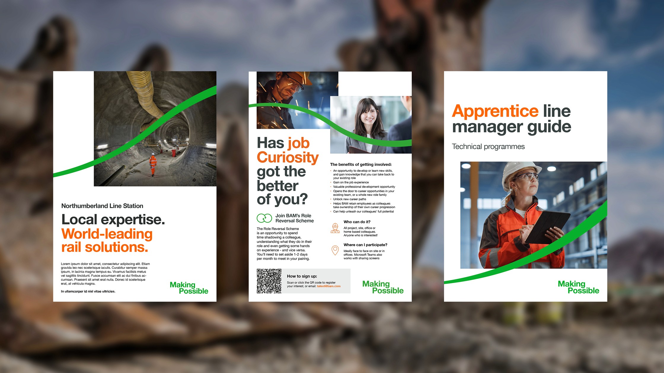 We helped shape Making Possible. A simple, human-led campaign platform that focused on outcomes, not process. The work reframed BAM’s role as an enabler of progress, using clear language and a confident visual system to make complex projects feel relevant and tangible.